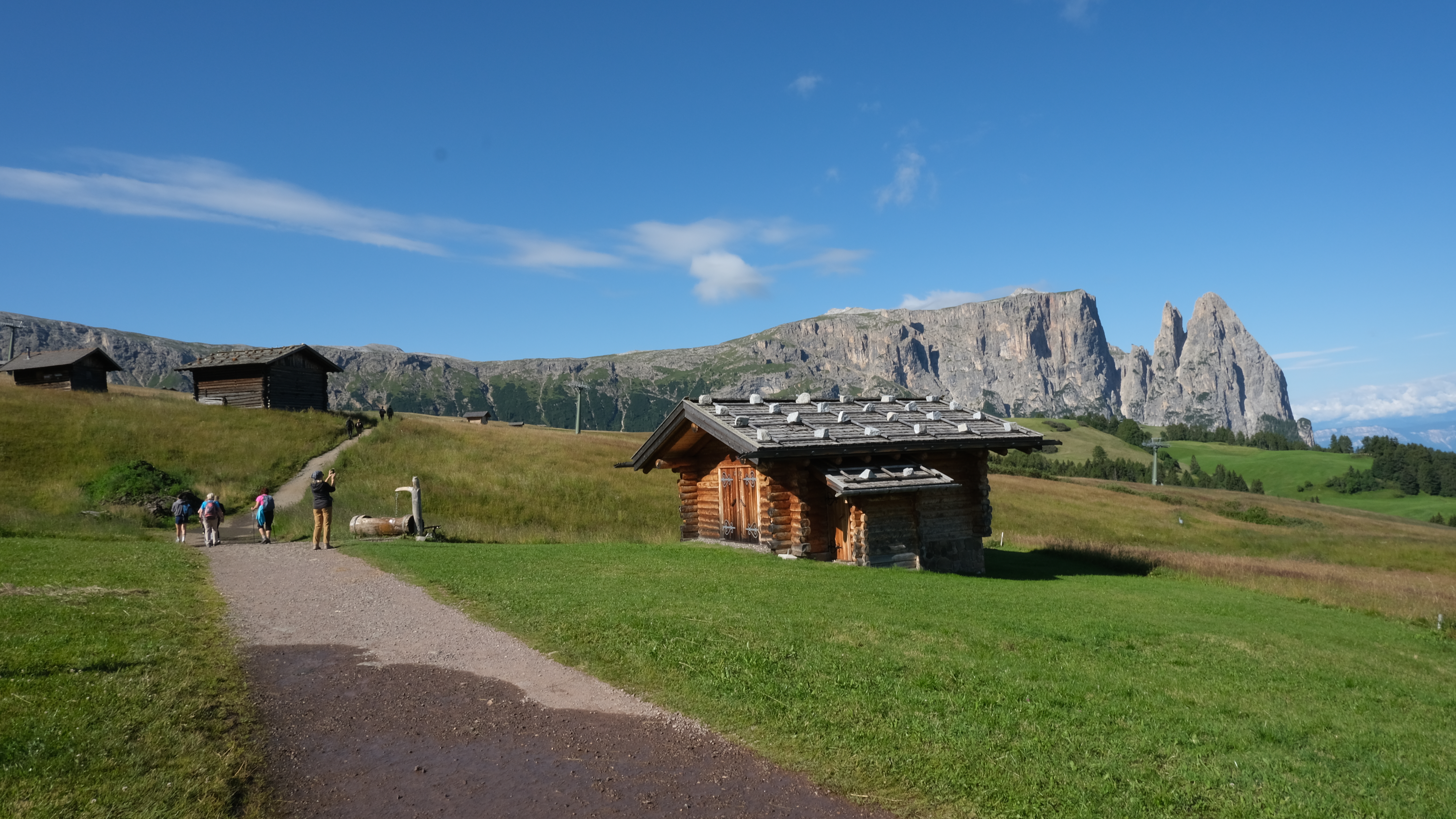 Brzký výjezd na největší evropské vysokohorské plató Seiser Alm do výšky 1.850m, pod úchvatné štíty skupiny Sassolungo. V roce 2009 tento přírodní park zařadilo UNESCO jako součást světového přírodního dědictví Dolomit. Možnost odpočinkové turistiky po nesčetných stezkách a chatách ve výškách kolem 2.000 metrů. Náročnější turisté mohou vystoupit na známé vysokohorské chaty Rifugio Bolzano 2.440m, s možností hřebenového přechodu na Tierser Alpl 2.450m. Nejzdatnější mohou vystoupat až na vyhlídkové vrcholy Sciliar 2.563m, případně impozantní Cima di Terrarossa 2.655m (stejně jako Gerlachovský štít). Nechybí ani možnost si výstupy „ulehčit“ využitím některých (spíše kratších) lanovek.